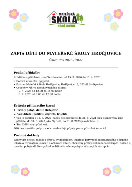 Kritéria k přijímacímu řízení 2026/2027